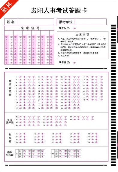 答題卡(又稱信息卡),是光標(biāo)閱讀機輸入信息的載體,是配套光標(biāo)閱讀機的各種信息錄入表格的總稱。信息卡將用戶需要的信息轉(zhuǎn)化為可選擇的選項,供用戶涂寫。OMR設(shè)備根據(jù)信息點的涂與未涂和格式文件設(shè)置將信息還原。